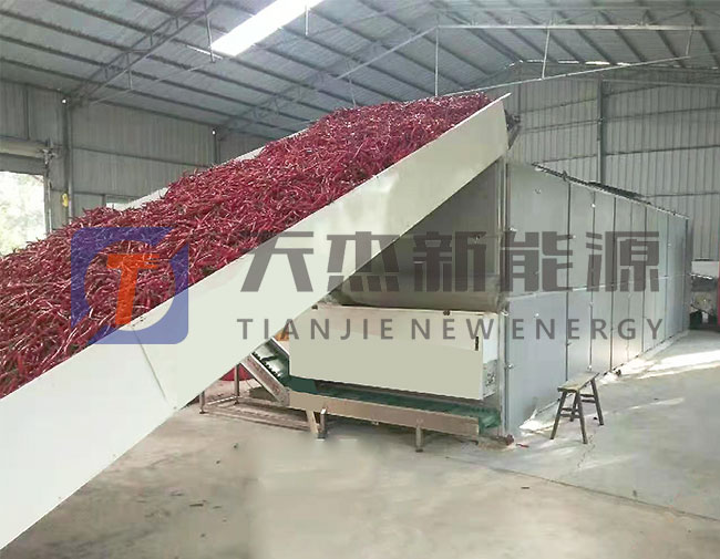 辣椒烘干機(jī)大體分為兩種:網(wǎng)帶式辣椒烘干機(jī)和箱式辣椒烘干機(jī)。箱式辣椒烘干機(jī)烘干使用的是托盤(pán),辣椒重疊的厚度一般在20~30厘米為宜。網(wǎng)帶式辣椒烘干機(jī)只需有人送料,厚薄程度機(jī)器會(huì)自動(dòng)撥動(dòng)。